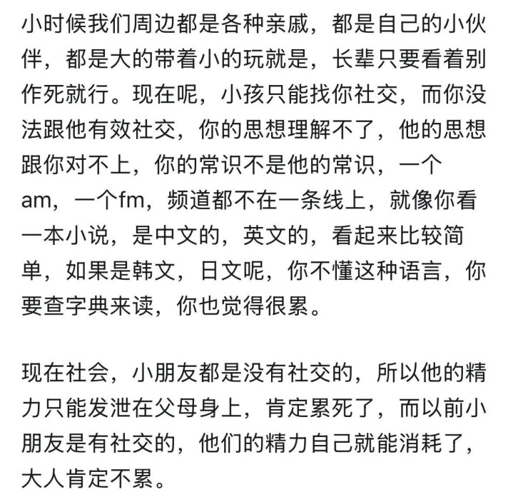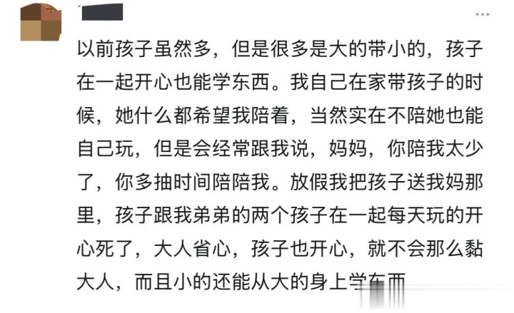 小时候族里兄弟姐妹好多人,同龄人互相带就行,不需要父母管